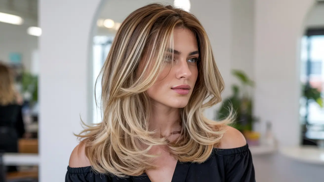 Voici une version très urbaine de la coupe mi-long dégradée 2024. Ce long dégradé donne du mouvement sans faire perdre trop de masse. C’est idéal si tu as les cheveux naturellement épais ou si tu veux éviter l’effet « bloc ». Le brushing naturel vers l’extérieur donne une allure stylée sans effort.